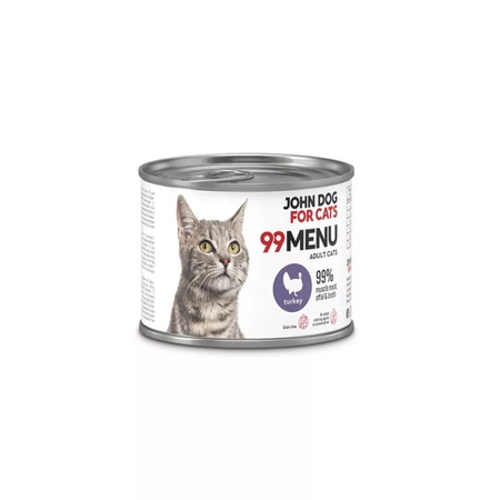 John Dog for Cats - Karma mokra 99 Menu - Indyk dla dorosłych kotów 200 g