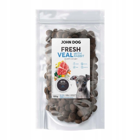 John Dog - Karma sucha Fresh Cielęcina z królikiem dla szczeniąt chrupki S 120 g  KARMA_SUCHA_John_Dog_PUPPY_FRESH_VEAL_WITH_RABBIT__HAPPY_START_120
