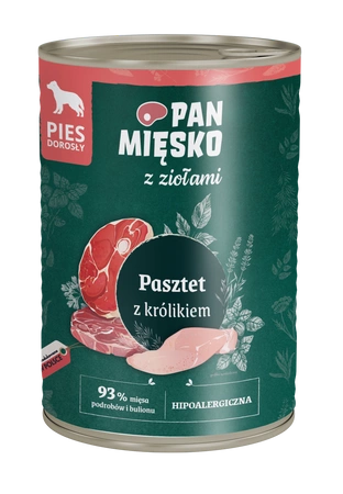 Pan Mięsko z ziołami – Pasztet z królikiem dla dorosłych psów 6 x 400 g